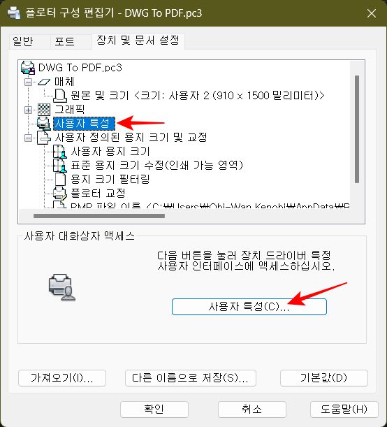 여기서 'DWG To PDF.pc3' 파일을 더블 클릭해서 열어 줍니다.