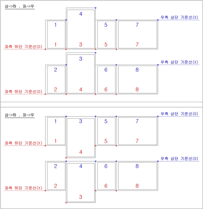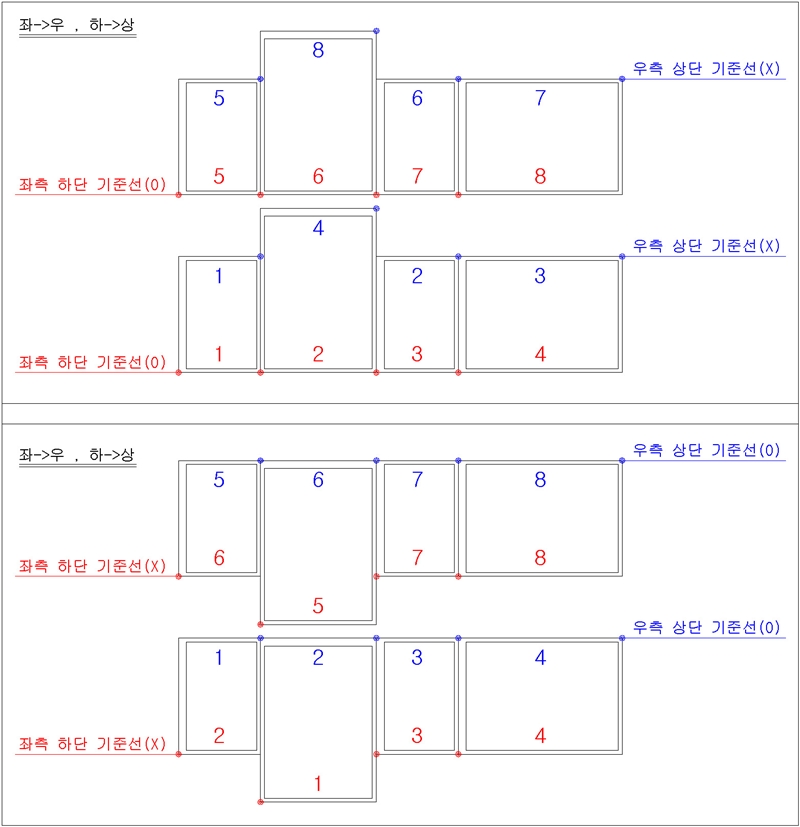 각 옵션별 정렬 기준은 첨부된 '도곽 샘플.dwg' 파일을 참조하시면 쉽게 이해 되시리라 여겨집니다.